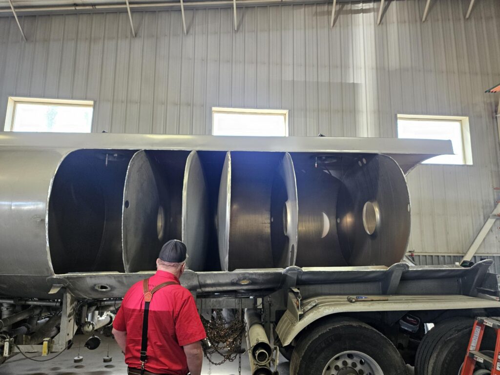 The Tankmax team in Sunnyside is the most experienced and best equipped to repair your wrecked trailer and get it back on the road. With numerous Expert aluminum welder/fabricators our capacity allows us to operate a major wreck repair line alongside our new build lines. Our fabrication equipment Includes a 20’ downdraft CNC plasma Table, 12’ break press, 12’ plate shear and a CAD technician on hand to create the best finishes possible.
